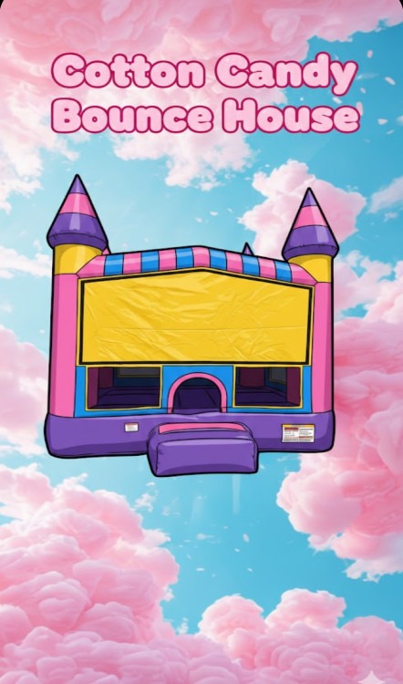 This Bouncy House is like bouncing on clouds of cotton candy! It's purple colors are just as soft as the candy it gets its name from. Perfect for back yard parties, events and any occasions.